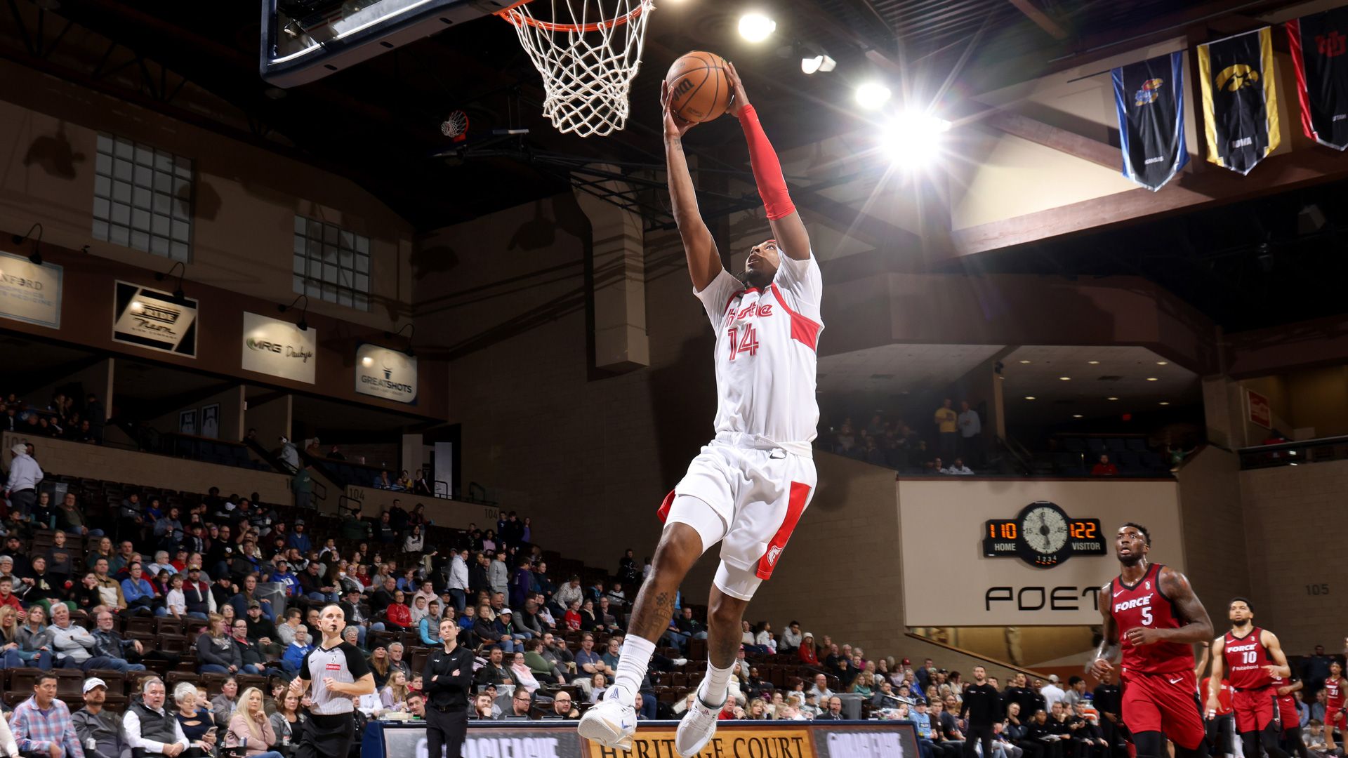 Zyon Pullin led the Hustle with 27 points and 10 assists. DJ Steward scored 18 points. Nate Hinton added 16 points, 12 rebounds and seven assists off the bench. Miles Norris registered 16 points. Yuki Kawamura totaled 14 points. Lucas Williamson contributed 12 points and seven rebounds.